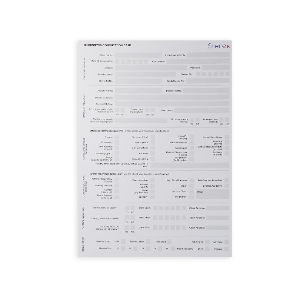Electrolysis Client Conuulation Cards–25 in a pack